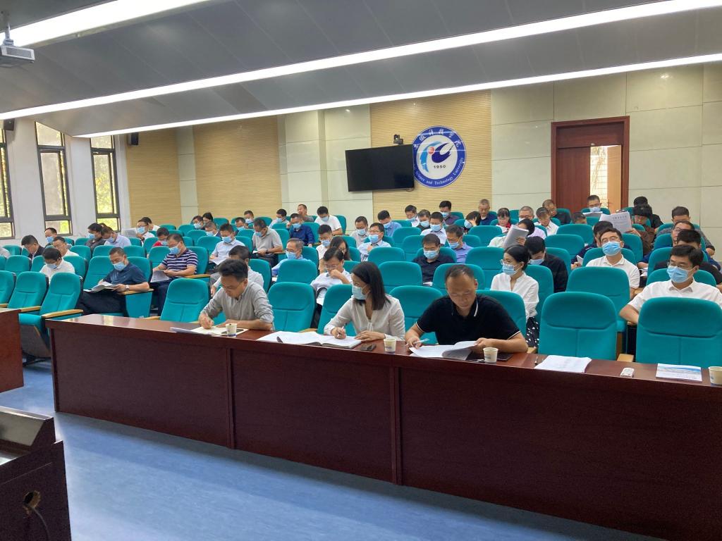 为进一步落实任务、夯实责任,持续推进我校本科教育教学审核评估工作,9月22日下午,学校在凤阳校区会议中心一楼报告厅组织召开本科教育教学审核评估工作推进会。校党委副书记、院长李震,各教学院(部)党政主要负责人,机关处室负责人,本科教育教学审核评估各工作组成员,教务处、督导考核办公室相关人员参加会议。会议由李震主持。