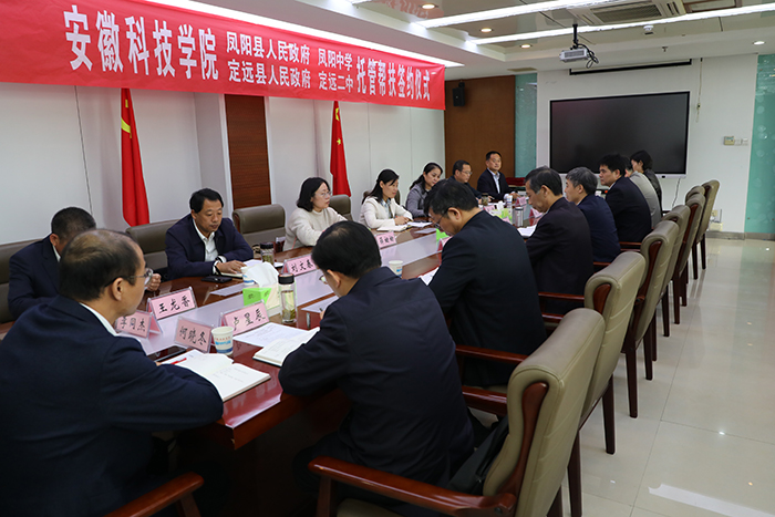 10月28日上午,星空线上平台(集团)官方网站与凤阳县人民政府、定远县人民政府、凤阳中学、定远县第二中学托管帮扶签约仪式在凤阳校区图书馆十楼会议室举行。校党委书记蒋德勤,党委副书记、院长李震,党委委员、纪委书记、监察专员王强,党委委员、副院长李升和,凤阳县人民政府副县长张艳,定远县人民政府副县长许倩,滁州市、凤阳县、定远县教育体育局、凤阳中学、定远二中相关领导同志参加仪式。