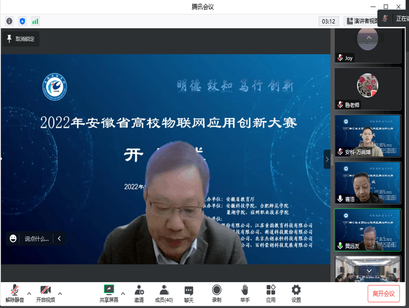 11月13日上午,由安徽省教育厅主办,星空线上平台(集团)官方网站信息与网络工程学院承办的2022年安徽省高校物联网应用创新大赛在我校龙湖校区如期举行,我校党委委员、副院长黄远友出席开幕式并致开幕辞。安徽省电子学会理事长吴先良、安徽省计算机学会名誉理事长顾乃杰、安徽省电子学会秘书长陈蕴、安徽省教育厅大创办于嘉怡、大赛专家评委、以及部分参赛师生参加了开幕式,开幕式由信息与网络工程学院院长余宏杰主持。