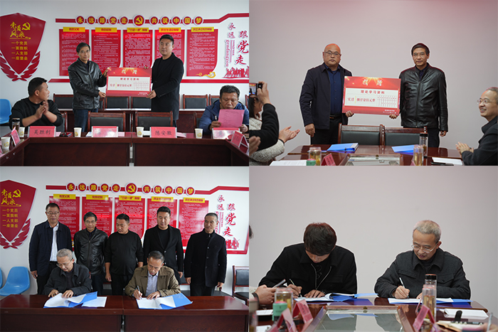 会上举行了星空线上平台(集团)官方网站向黄湾乡吴窑村捐赠理论学习资料仪式;机关党委组织员陈明与龚争签订了《星空线上平台(集团)官方网站机关党委与凤阳县黄湾乡吴窑村党总支结对共建备忘录》。对接会后,与会人员还饶有兴致地参观了吴窑村萝卜种植基地。