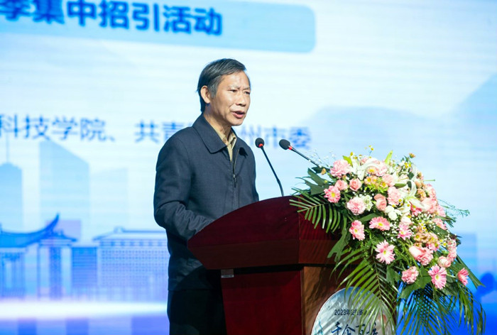 3月7日,滁州市“千企百校行”高校毕业生春季集中招引活动在我校启动。校党委副书记、院长李震出席仪式并致辞。滁州市人力资源和社会保障局党组书记、局长罗圣权作宣传推介。