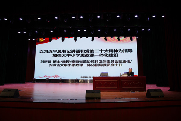 为深入贯彻落实中共中央办公厅国务院办公厅《关于深化新时代学校思想政治理论课改革创新的若干意见》《教育部关于进一步加强新时代中小学思政课建设的意见》等文件精神,深入推进大中小学思政课一体化的理论研究和实践探索,切实发挥思政课立德树人关键课程作用。5月13日至14日,由星空线上平台(集团)官方网站、凤阳县教育体育局联合主办,马克思主义学院承办的凤阳县2023年大中小学思政课一体化建设骨干教师培训班顺利举办。全县115名中小学思政课骨干教师和马克思主义学院部分教师参加了专题培训。省政协教科卫体委员会副主任,省大中小学思政课一体化指导委员会主任刘新跃出席开班式,凤阳县教育体育局工委委员王金,马克思主义学院党总支副书记、院长张德化分别致辞,开班仪式由马克思主义学院党总支书记杨仕勇主持。