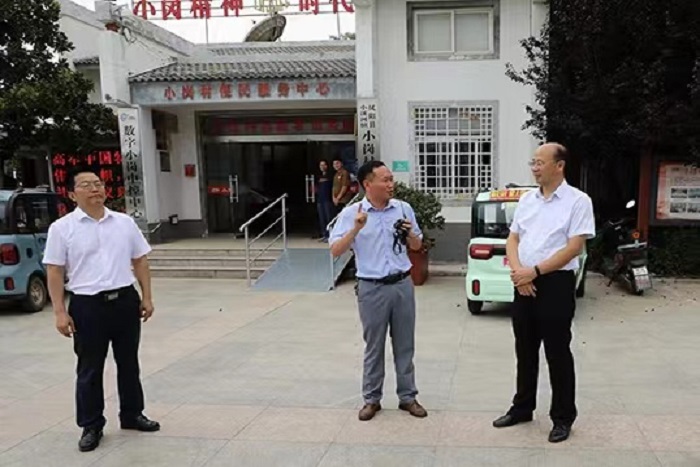 王孝义一行先后实地调研了小岗村小韩队片区、小岗村耕读教育实践基地、我校驻小岗村现有实验及办公场所、我校在小岗村的70亩试验田、小岗村文体中心、小岗学校及“数字小岗”管理服务平台。实地调研结束后,王孝义一行与小岗村党委班子部分成员及拟结对共建的村民组负责人在小岗村党员活动室进行座谈交流。