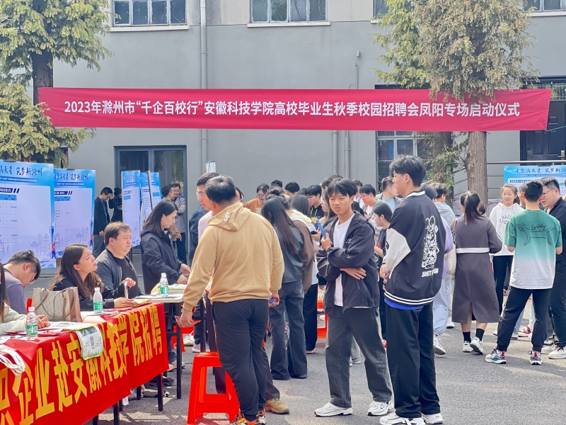 10月13日上午,滁州市2023年“千企百校行”高校人才招聘会启动仪式在我校举办。校党委书记时伟出席启动仪式并致欢迎辞,滁州市委常委、宣传部部长李宝君,滁州市人力资源和社会保障局局长罗圣权,凤阳县委副书记、县长王俊卿出席仪式,滁州市、凤阳县及学校有关部门负责同志参加活动。