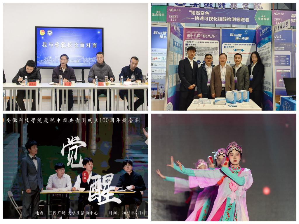 学校共青团紧扣团的根本任务、政治责任和工作主线,丰富第二课堂建设,建设多元一体化的实践育人服务平台,培养德智体美劳全面发展的社会主义建设者和接班人。获批安徽省非物质文化遗产传承基地、安徽省非物质文化遗产教育传习基地,安徽省实践育人基地,开辟优秀传统文化传承新模式、新途径,深度发掘地方文化蕴含的历史价值、精神价值和思想价值。探索“艺术+思政”教育模式,依托五四、“七一”、十一、一二九及迎新、毕业等重要时间节点推进美育与思政教育深度融合,量体裁衣打造独具“安科味”的思政育人模式,人民日报、中国日报进行专题报道。获得国家级、省级大学生艺术展演奖项15次。营造积极、健康、高雅的校园文化氛围,连续4次获评安徽省校园读书创作活动“优秀组织奖”,获评安徽省第二届、第五届校园读书创作活动“优秀读书品牌活动奖”。