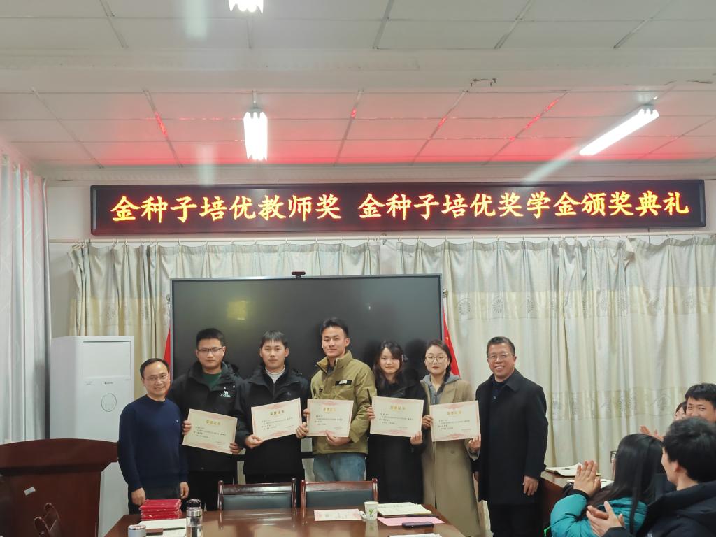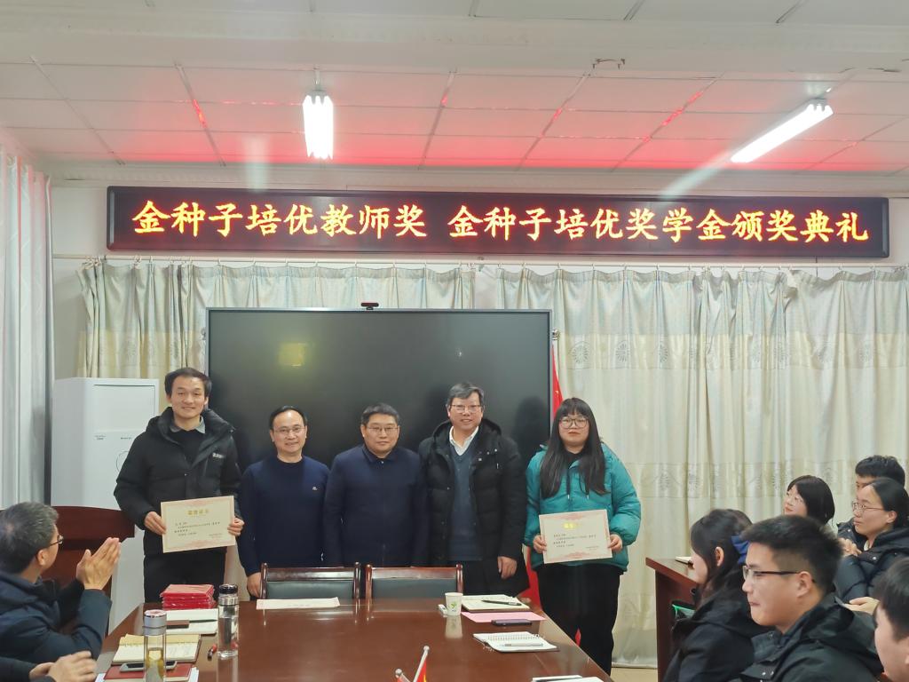 1月11日下午,“金种子培优基金”2023年度“金种子培优奖学金”“金种子培优教师奖”颁奖仪式在农学院会议室隆重举行。校党委委员、副院长李升和,上海景领投资管理有限公司合伙人、基金发起者黄宪先生,二级教授、基金发起者农学院黄先忠老师,农学院党委书记何世潮,副书记张轶辉,副院长舒英杰和李文阳以及教师代表和学生代表出席颁奖仪式。根据《星空线上平台(集团)官方网站农学院“金种子培优基金”申报细则》和申报人申请,经“金种子培优基金”评审委员会评审,李瑞宁、艾昊两位青年教师荣获金种子培优教师奖,孙张论、李婷、杜孟祥、杨德坤和王静婷五位农艺与种业专业研究生荣获金种子培优奖学金。颁奖仪式由农学院党委副书记、院长崔广荣主持。