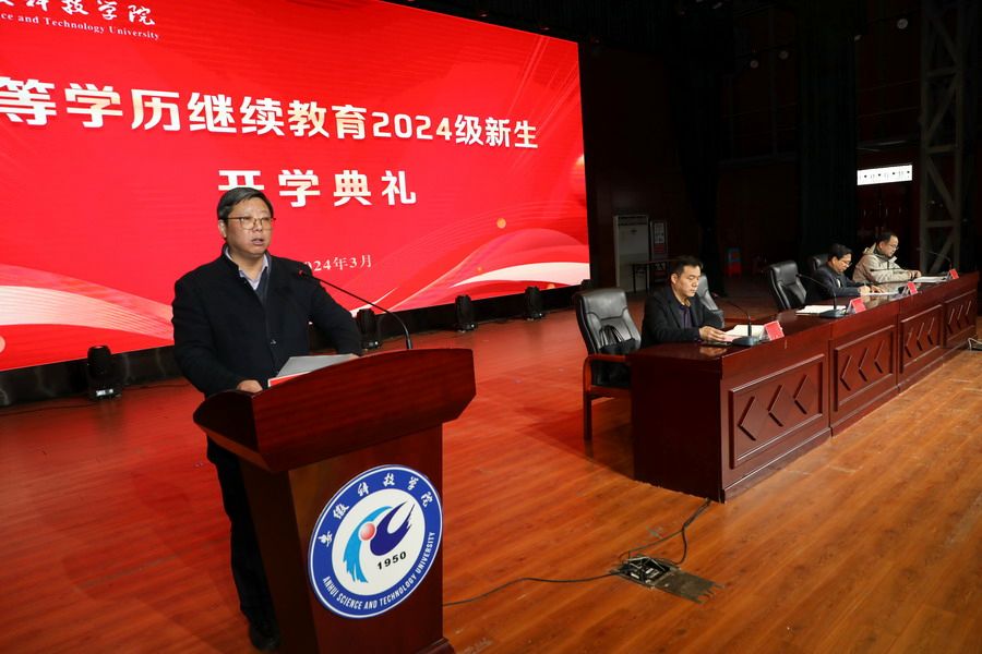 春分时节,草长莺飞,为推动高等学历继续教育规范、健康、有序发展,3月21日上午,我校在凤阳校区大学生活动中心隆重举行2024级新生开学典礼。校党委委员、副校长李升和、继续教育学院领导班子成员出席开学典礼。教师代表、新生班主任和500余名2024级新生等参加了典礼。开学典礼由继续教育学院副院长李忠(主持工作)主持。