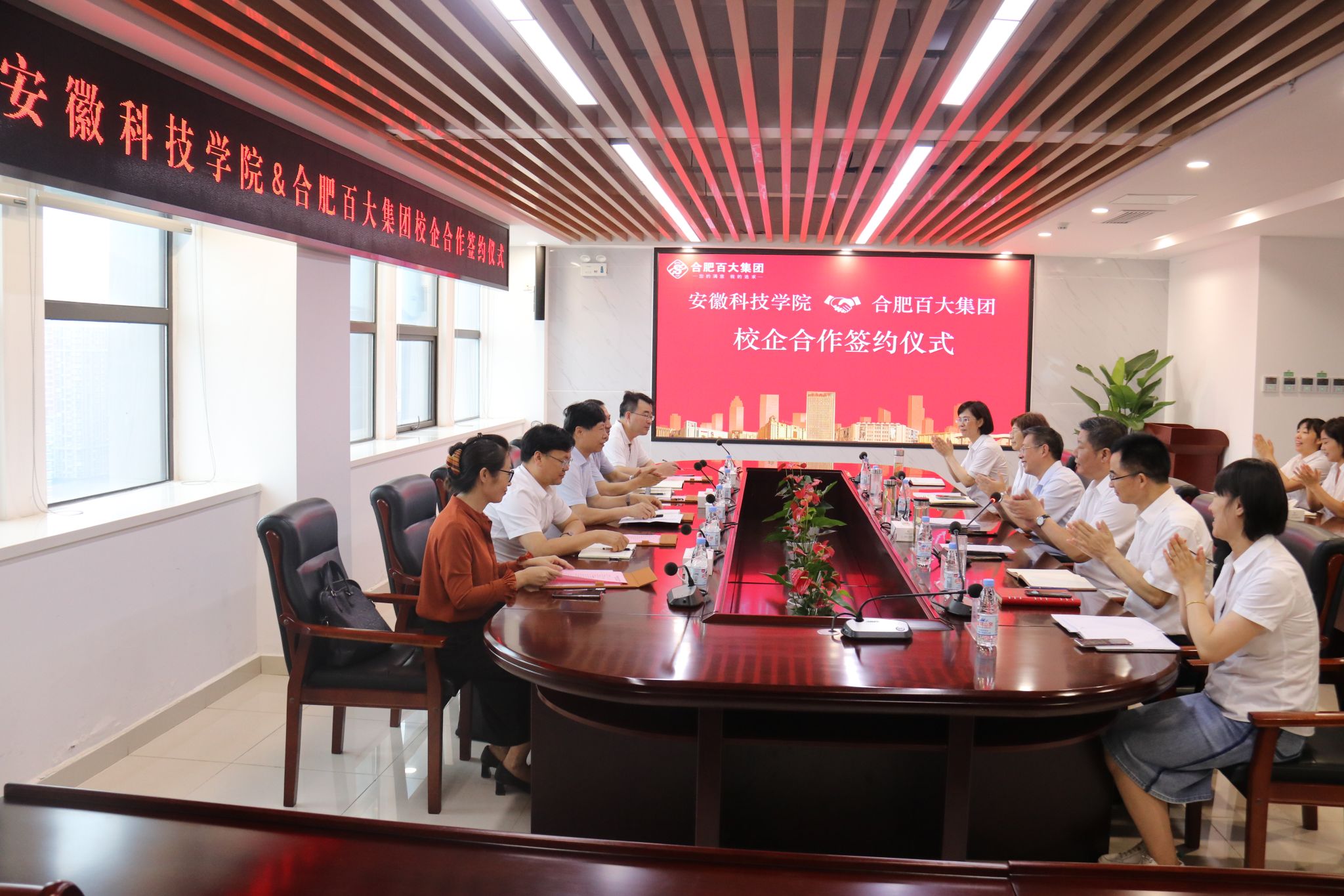 财经学院院长郝世绵和百大集团党委委员、工会主席裴文娟代表双方签署了《合肥百大集团 星空线上平台(集团)官方网站战略合作协议》;双方观看了合肥百大集团宣传片,并围绕智力共用、人才共育、项目共研、平台共享等进行深入交流。