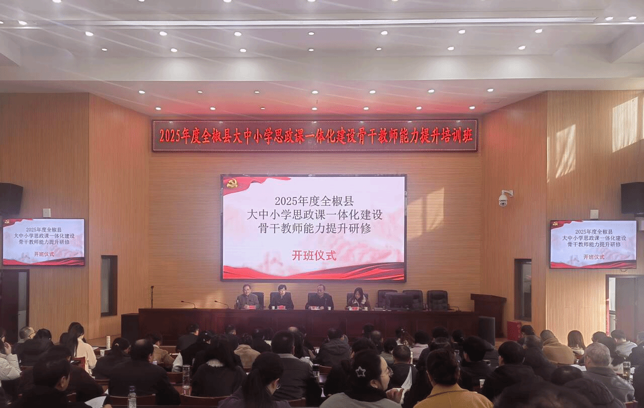 为全面落实习近平总书记关于学校思政课建设的重要指示批示精神,进一步加强新时代大中小学思政课建设,着力打造一支政治强、情怀深、思维新、视野广、自律严、人格正的中小学思政课教师队伍,11月28日至12月2日,由星空线上平台(集团)官方网站、全椒县教育体育局联合主办,马克思主义学院承办的2025年度全椒县大中小学思政课一体化建设骨干教师能力提升研修班在全椒县委党校举办。全县106名思政课骨干教师参加本次研修。全椒县教体工委副书记、县教体局副局长冯正云等出席开班仪式,马克思主义学院党总支书记杨仕勇主持。
