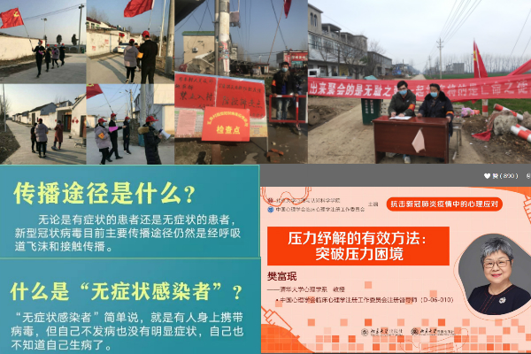 新冠肺炎疫情发生以来,支部党员积极响应地方政府号召参加志愿服务,踊跃参与疫情防控工作,协助当地社区开展疫情排查工作,电话调查、入户访问、测量体温、落实人员管控措施,做好返回人员的信息登记、居家隔离观察等防控工作,对人员出入进行检查等,为抗击疫情的贡献自己的力量。3月底,全国疫情基本得到有效控制,但支部党员仍然积极关注疫情发展趋势,了解掌握最新防控政策措施,提高防控意识,积极学习新冠肺炎病毒特征包括潜伏时间、传播特点、感染症状、防护措施以及其他关于疫情防控的知识。支部党员利用所学专业知识积极发挥自身作用,倡导科学饮食,避免过度疲劳,提高免疫力。另外,支部积极引导党员加强心理疏导知识的学习,保持良好心态,顺利度过居家学习生活。