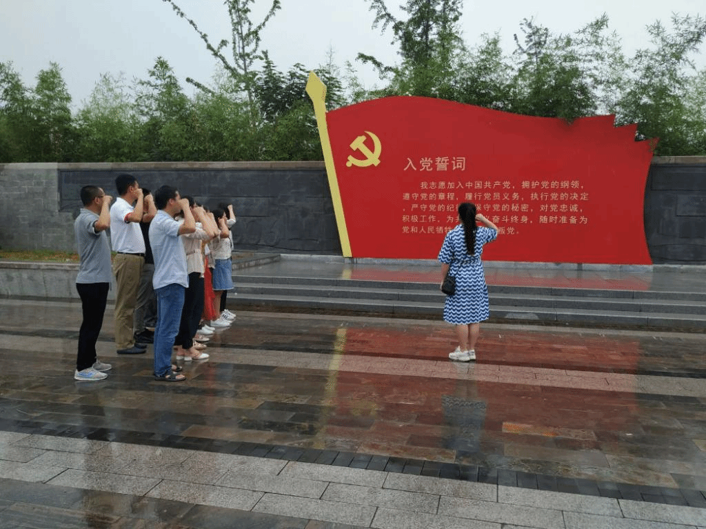 天公不作美,淅淅沥沥的小雨下个不停,但是这微凉的雨点无法阻挡党员同志参加党员教育活动的热忱。食品工程学院教工党员一行先到沈浩同志先进事迹陈列馆开展党员教育活动,大家按照沈浩同志先进事迹陈列馆的展厅顺序,通过丰富的图文和实物材料一同回顾了沈浩在小岗村“六年村官”的不平凡工作经历和取得的主要成绩,瞻仰了沈浩故居,陈列馆一物一景都能让我们深深体会到沈浩朴素的生活和奋发的斗志。在陈列馆外广场上党员同志们冒着小雨举起右拳重温了入党誓词,铮铮誓言久久回荡,表达了全体党员“不忘初心、牢记使命”的坚定政治信念。