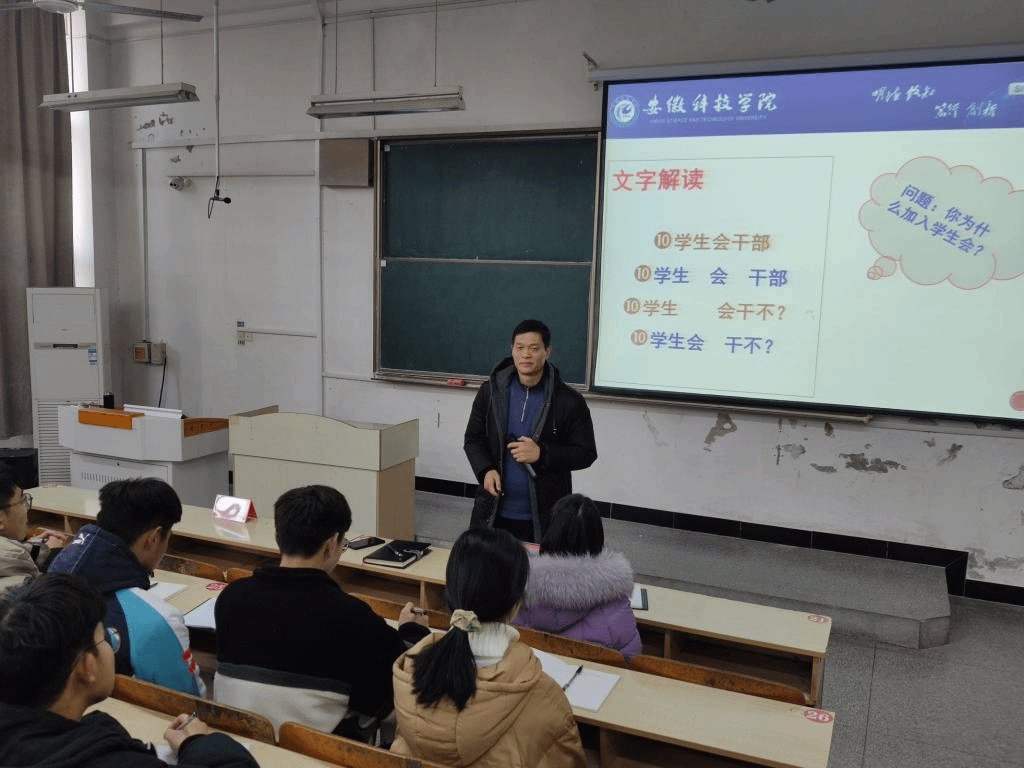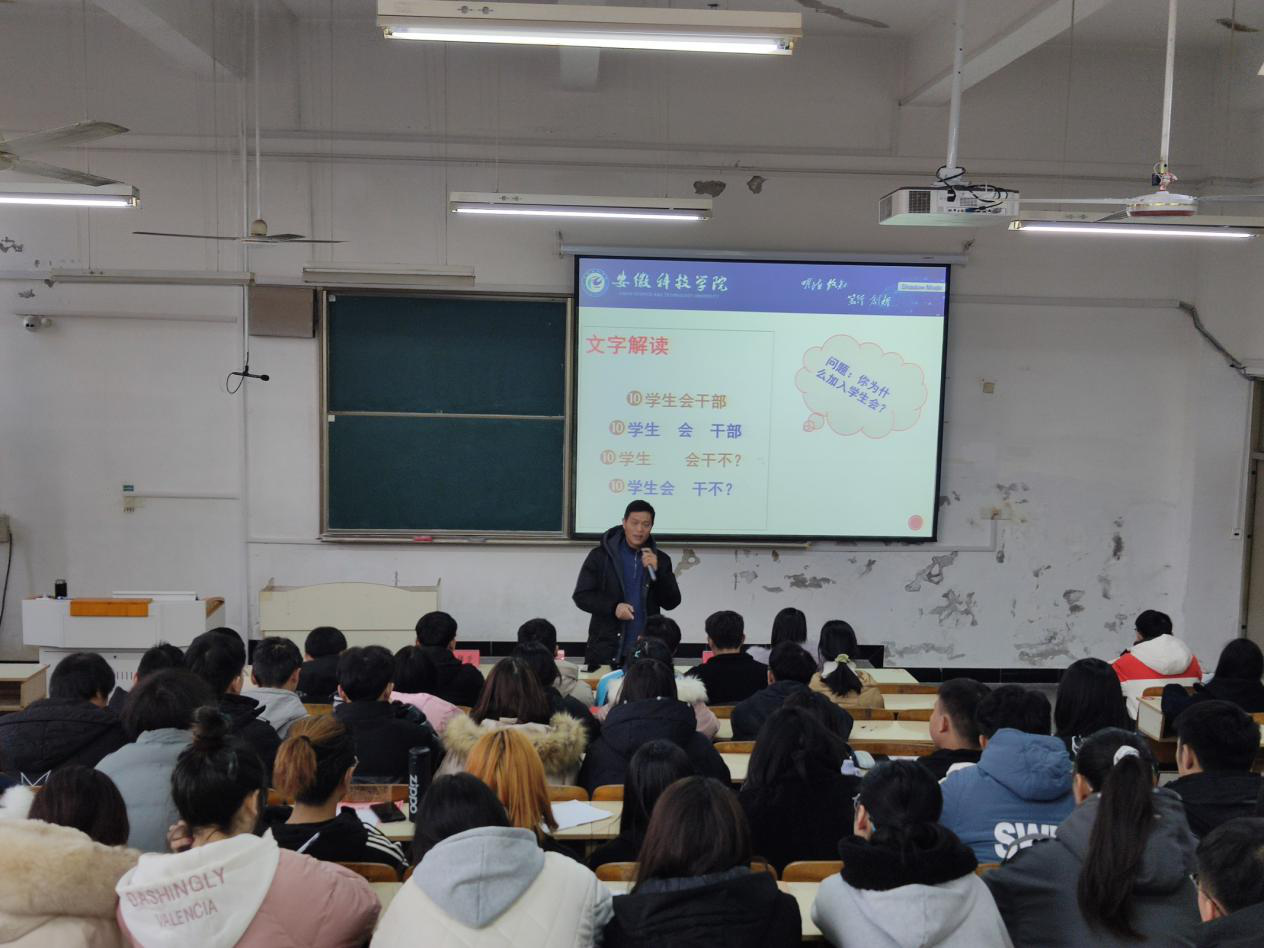 为加强食品工程学院学生干部队伍建设,提高学生干部综合素质与责任意识,加强学生干部队伍凝聚力与创造力。12月16日下午,食品工程学院2020年度学生干部培训班开班典礼在求知楼A201正式拉开帷幕,开班典礼由专职辅导员吴玘主持。本次培训由食品工程学院党总支书记付光玺为学院团委及学生会全体成员做题为“如何做一名优秀学生干部”的培训与分享。