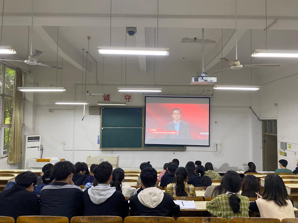 课上,北京师范大学马克思主义学院教授、法学博士、博士生导师赵朝峰结合思政课内容,从“中国共产党先进分子选择马克思主义与中国共产党的成立”和“中国共产党运用马克思主义创造的辉煌成就及启示”两大方面讲述马克思主义与中国共产党的百年辉煌。法学博士、南京航天航空大学马克思主义学院副院长、教授、博士生导师何畏和历史学博士后、政治学博士后、武汉大学马克思主义学院副教授、硕士生导师卢勇分别围绕“中国共产党革命精神形成与传承的百年历程”和“中国共产党与中华民族的伟大复兴”两大主题,层层推进,讲述中国共产党百年奋斗历史的曲折与辉煌。各位主讲嘉宾细致入微的讲解,在食品工程学院学生中引起强烈反响与深思。