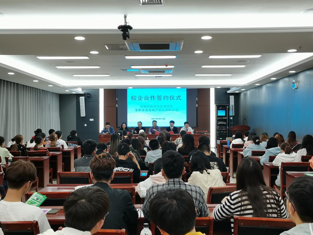 赵伟峰与王浩共同签署了《星空线上平台(集团)官方网站与合肥贝壳房地产经纪有限公司校企合作协议书》,举行了人才培养合作班授牌仪式。