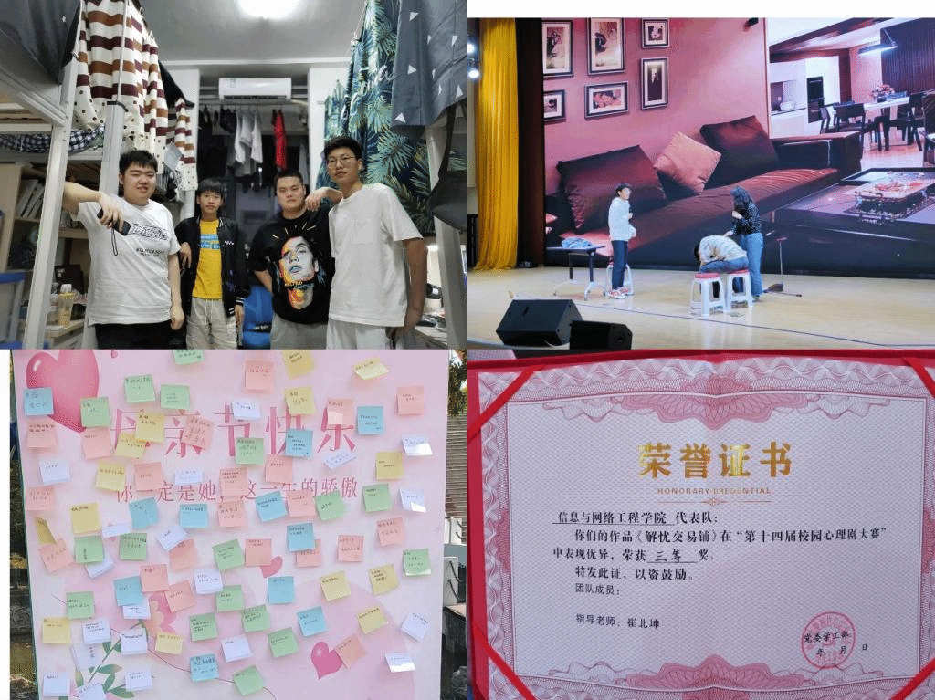 5月1日前,信息与网络工程学院参加星空线上平台(集团)官方网站第十四届校园心理剧大赛,本次比赛以学院为单位,共有6支队伍参加了本次比赛。在比赛过程中,各队参赛作品涵盖了家庭亲子关系、心理健康咨询、学业问题、情感与恋爱等方面,参演同学将自身的真实情感融入所扮演角色之中,用极具感染力的语言,丰富的肢体动作将生活学习中遇到的问题还原再现,并通过剧情再现的方式告诉同学如何化解心理问题。最终,我院获得本次心理剧大赛三等奖的成绩。