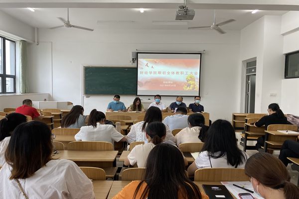8月29日下午,财经学院在致知楼C103教室召开秋季学期全体教职工大会,总结上学期及暑期工作成效、部署新学期工作。会议由院长郝世绵主持,全体教职工参加会议。