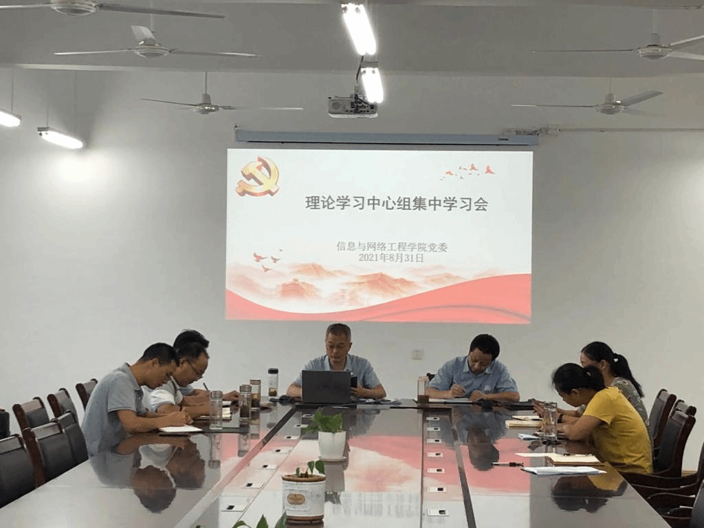 8月31日下午,信息与网络工程学院党委在尚行楼B418会议室召开理论学习中心组集中学习会。学院中心组成员参加了会议,会议由院党委书记王振其主持。