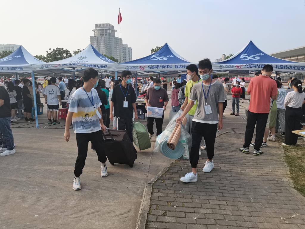 “同学,请先这边扫码”“同学,请拿出录取通知书、身份证、准考证检录”“同学,请收好你的校园卡和钥匙”一句句温柔的话语汇成动人的音符。井然有序的迎新现场也有“意外”发生,一位新生将准考证放在了行李箱中拿不出,志愿者轻声安慰她别着急,并领着她先前往宿舍将通知书取出再来进行检录。耐心、细心、贴心,志愿者们用家人的方式温暖着每一位前来报到的新生。