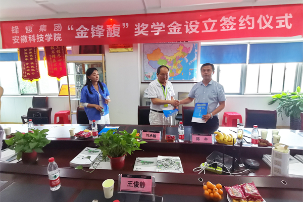 在滁访企拓岗、调研期间,陈丰一行首先来到金锋馥(滁州)输送机械有限公司,受到董事长刘承翰、人力资源总监王俊静热烈欢迎,随后双方就毕业生就业、毕业实习及开展产学研合作等方面进行了深入的交流,并就《金锋馥(滁州)科技股份有限公司、星空线上平台(集团)官方网站机械工程学院关于设置“金锋馥”奖学金实施办法》达成一致,签署了合作协议。