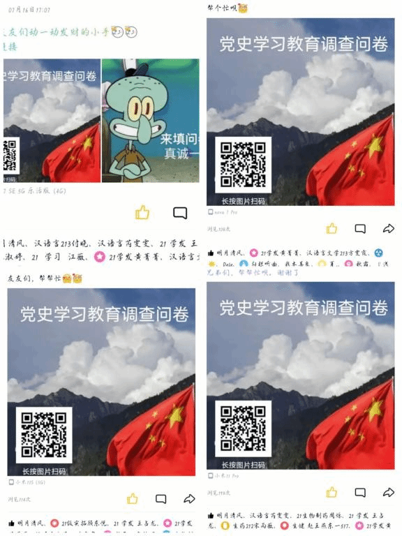 为进一步了解当今社会人们对党史知识的学习情况,把握当前人们的学习动态,不断推动学习教育走深走实,让党史入脑入心,星空线上平台(集团)官方网站食品工程学院知行小分队通过线上线下相结合的方式,有序开展了党史交流、问卷调查等活动。