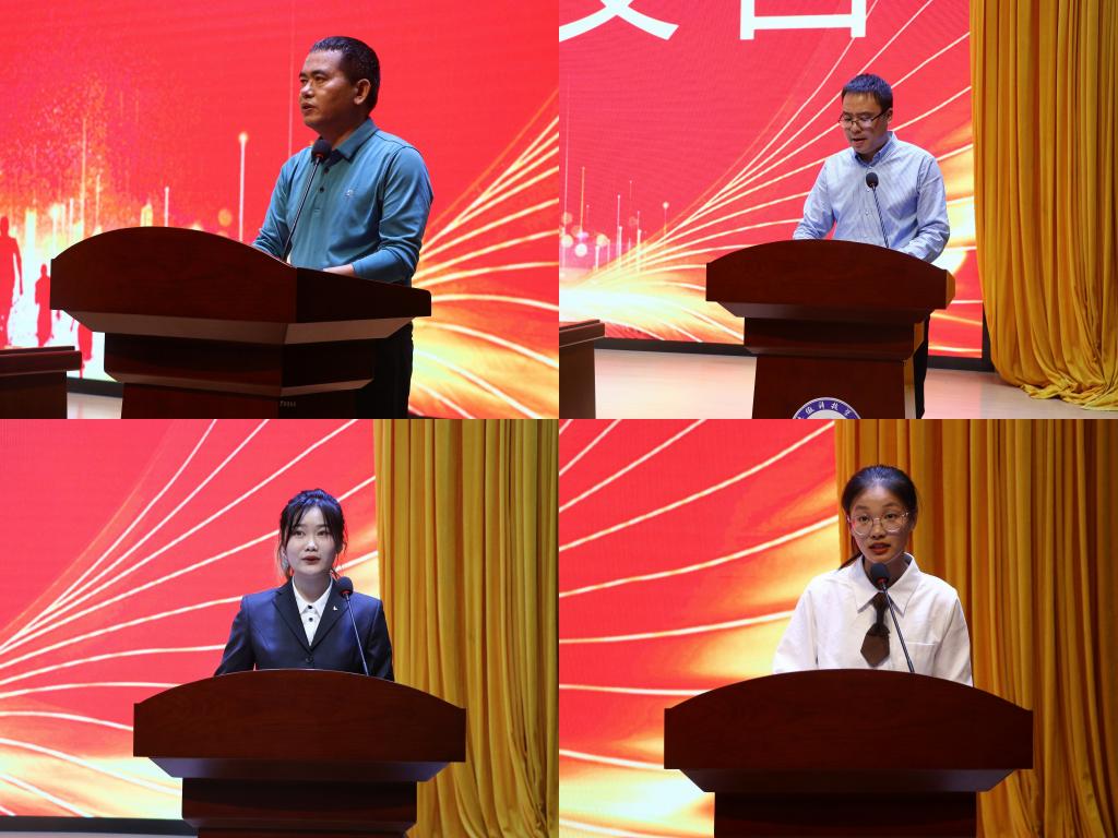 教师代表王乐在会上对新生提出了殷切希望,他鼓励新同学们努力奋斗,不负韶华;学生代表孙欣然、张子延结合自身实际畅谈感悟、规划人生、憧憬未来,引得现场掌声阵阵。