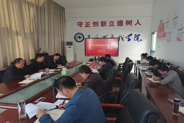 10月17日下午,马克思主义学院组织党员教师在学院学术交流中心开展专题学习研讨,深入学习讨论习近平总书记在党的二十大上所作的报告。学院党总支书记杨仕勇主持会议并讲话,学院党总支副书记、院长张德化、副院长张栋和各教研室主任、博士教授代表、新进教师参加学习交流。