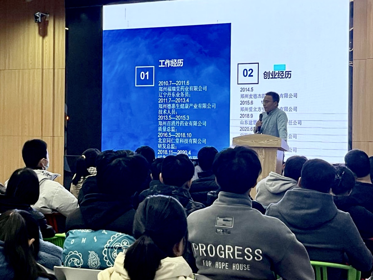 11月30日,学院特邀2006级校友,百消丹健康科技有限公司总经理、安徽维贝莱医疗科技总经理张品于创业园多媒体报告厅举办了题为“创业青春不负韶华”的创新创业讲座。讲座中,张品结合自身创业实践经历从创业的艰辛、创业者应具有的人格品质、创业过程中应坚持的态度和原则等方面进行了分享,希望同学们要敢于挖掘自己的创新创业潜能,让梦想成为现实。学生们听的专注投入,并就创业困惑、就业与创业的选择问题与学长进行了积极互动。