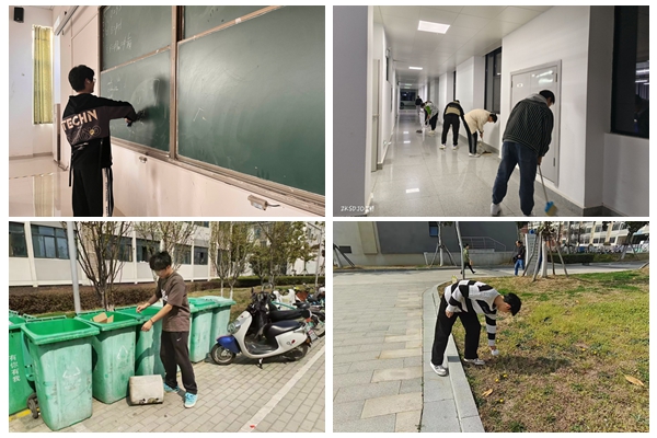 网络工程专业各班级团支部组织开展校园清扫志愿服务活动。学生志愿者们被分成若干小组,负责不同的区域,开展义务劳动活动。学生们有的负责教学楼及实验楼的卫生打扫、桌椅摆放等;有的对草坪里的落叶、杂草及操场上的垃圾进行清理;有的在食堂里协助保洁阿姨清洁餐盘回收工作台、就餐桌椅以及筷子橱柜等每个角落的卫生工作,用自己一丝不苟的态度展现着对志愿服务工作的热情。