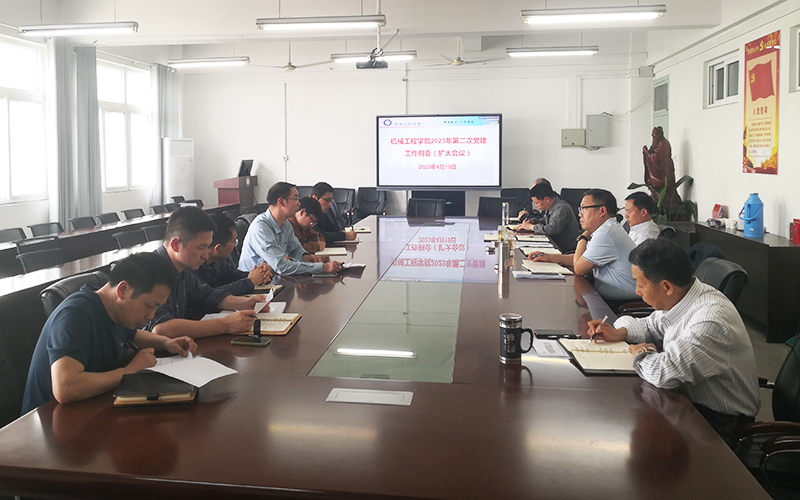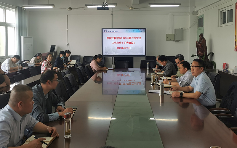 根据学校党委主题教育工作方案,结合落实党支部书记工作例会制度,4月19日下午,机械工程学院召开主题教育动员会暨2023年第二次党建工作例会,传达学校学习贯彻习近平新时代中国特色社会主义思想主题教育动员会精神,对学院开展主题教育进行动员部署,研讨主题教育实化举措,部署推进2023年党支部任务清单制和党员承诺制等工作。会议由学院党委书记胡振江主持,分两个阶段进行,机械工程学院全体教工党员参加第一阶段会议,学院党委成员、组织员、全体党支部书记和系主任参加第二阶段会议;学生党支部主题教育动员部署工作另行安排。