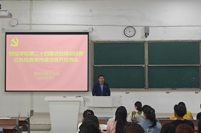 5月6日下午,财经学院分党校第24期党校培训班暨红色经典著作读书班开班典礼在致知楼C111举行。学院党委书记杜小明,各学生党支部书记,学生入党积极分子和青年教师入党积极分子参加会议。会议由学院党政办公室主任张俊主持。