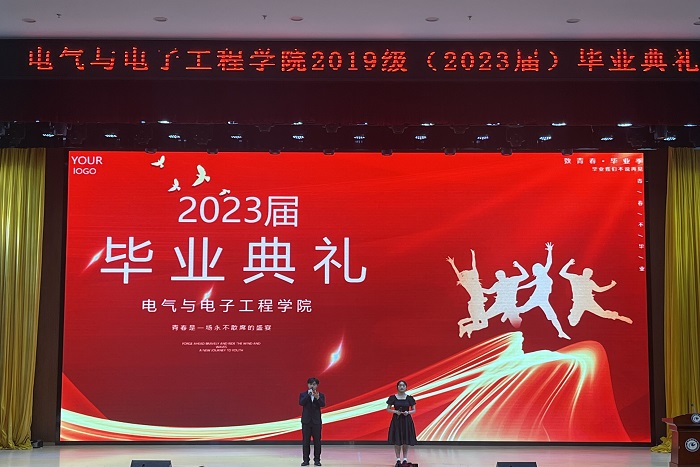 6月8日晚,电气与电子工程学院2023届毕业典礼于东辅楼报告厅隆重举行。学院党委书记骆海邦,党委副书记、院长夏显明等主要党政领导,学院各系室负责人,辅导员及2023届毕业生参加典礼。典礼由骆海邦主持。