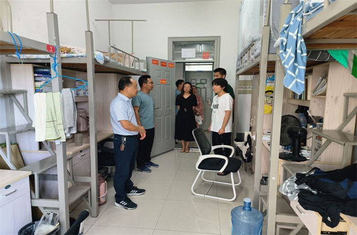 会后,尚磊带领辅导员深入留校学生宿舍,针对用电安全、卫生、消防落实进行检查,对于存在问题的宿舍,责令立即整改。学生表示,将自觉遵守学校的安全规定,保持宿舍环境的整洁,集中精力投入到暑期学习实训和社会实践中。(特约通讯员:王延丽 摄影:汤万庆 审核:尚磊 编辑:李锦)