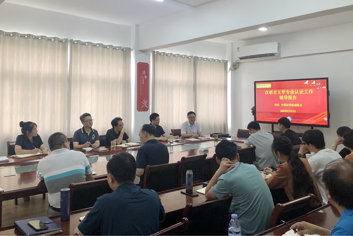 7月7日下午,外国语学院副院长洪民应邀为人文学院作汉语言文学专业认证工作辅导报告。学院主要党政领导、中文系全体教师、全体辅导员及新进教师参加报告会。报告会由副院长牛永辉主持。
