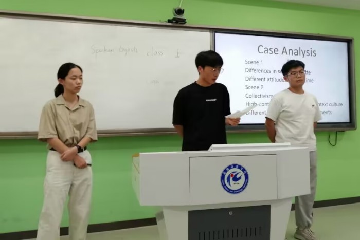 根据有关文件要求,外国语学院于10月18日下午两点在求知楼智慧教室303举行了跨文化能力大赛校内选拔赛。此次比赛通过线上线下相结合的方式进行,来自两个校区十个团队的学生参加了此次比赛。外国语学院有关教师担任此次比赛的评委。
