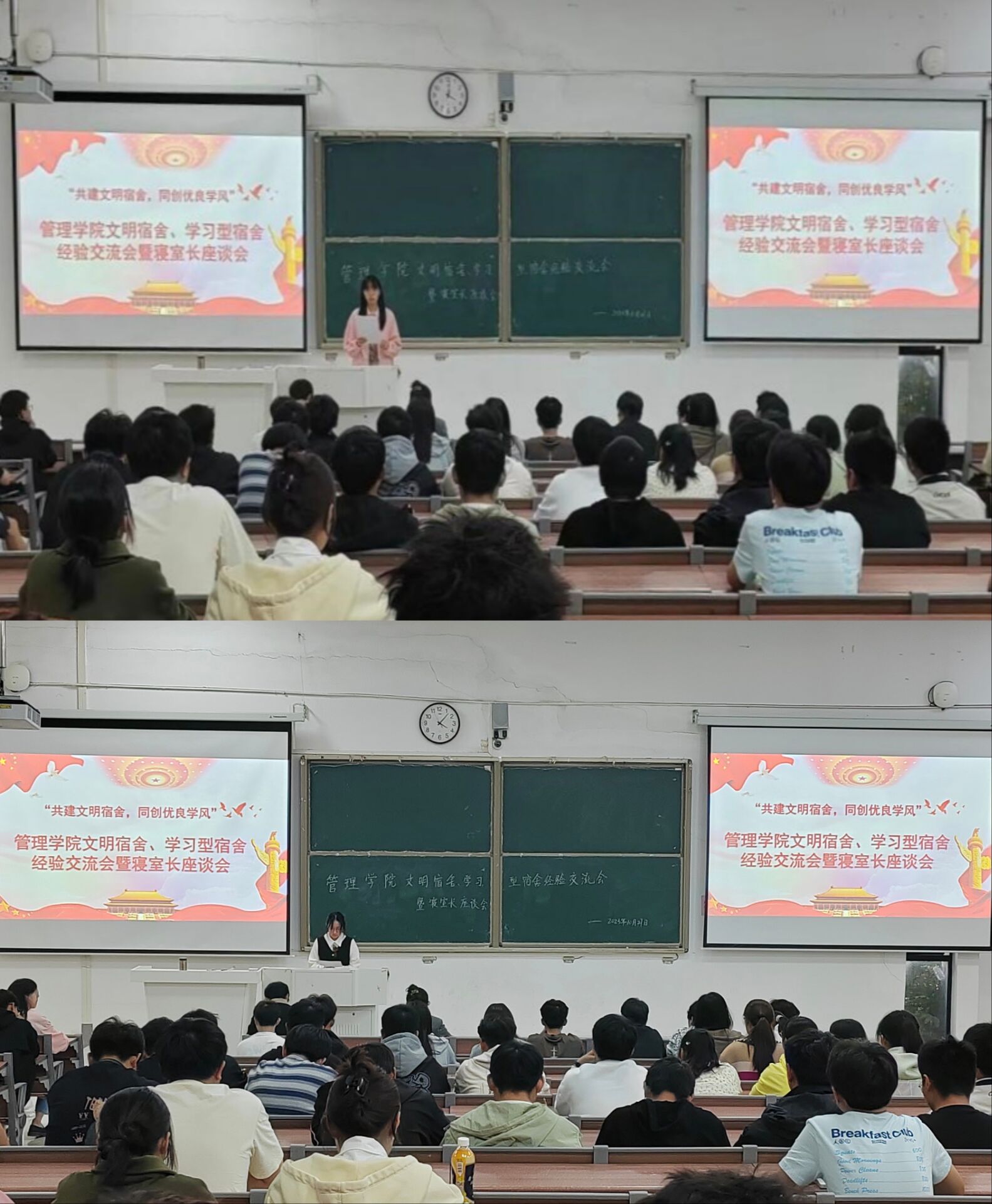 为推进管理学院文明宿舍与学习型宿舍创建工作见真章、出实效,进一步提高寝室长队伍的整体素质和工作能力,营造安全、文明、舒馨、积极的宿舍氛围,10月27日下午,管理学院在致知楼C111教室举办了“管理学院文明宿舍、学习型宿舍经验交流会暨寝室长”座谈会。管理学院党政领导和有关教师出席会议。会议由专职辅导员赵晨妍主持。