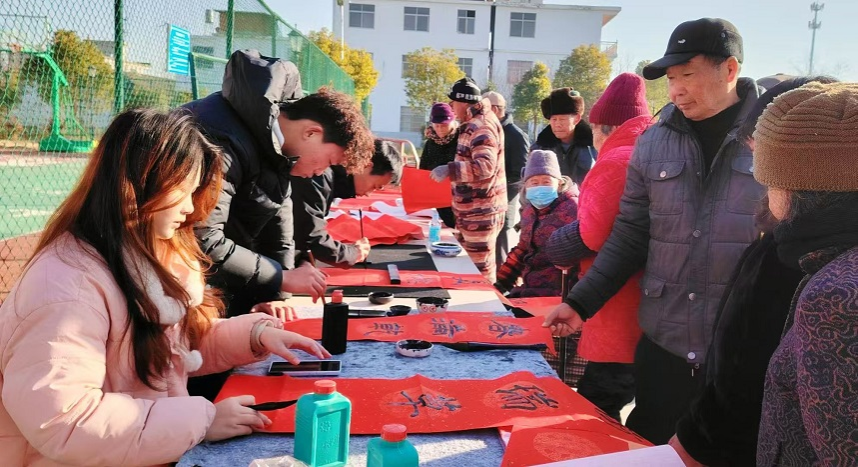 为助力乡村振兴提质增效,营造欢乐祥和的新春氛围,推动优秀传统文化进基层,元旦期间,我校组织书美协会大学生志愿者赴学校定点帮扶的凤阳县枣巷镇黄咀村开展“移风易俗倡新风,春联送福赠万家”文化下乡活动。大学生书美协会指导老师、外国语学院党委副书记张海亮带队指导。