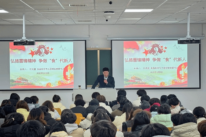 团课中,付光玺通过详细的资料、生动的视频展示,回顾了雷锋同志平凡而伟大的一生,深入阐述了雷锋精神的内涵与时代价值。他结合食品专业特点,鼓励同学们在学习和生活中积极践行雷锋精神,发扬刻苦钻研的精神,努力提升专业素养,以实际行动诠释“食”代担当。付光玺表示,雷锋精神不仅是一种精神符号,更是一种行动指南。雷锋以其无私奉献、助人为乐的高尚品质,成为广大青年学习的榜样,他的精神穿越时空,历久弥新,在新时代依然散发着熠熠光辉。我们要将雷锋精神融入到专业学习中,努力成为有担当、有作为的新时代青年。