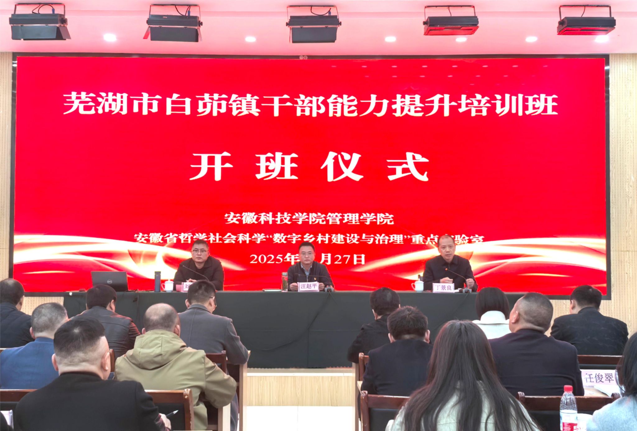 11月27日至11月29日,管理学院在凤阳县小岗干部学院成功举办芜湖市鸠江区白茆镇干部能力提升培训班,来自全镇54名镇村骨干参加了培训。此次培训的主题是“学习贯彻党的二十届四中全会精神,开创白茆振兴新局面”。