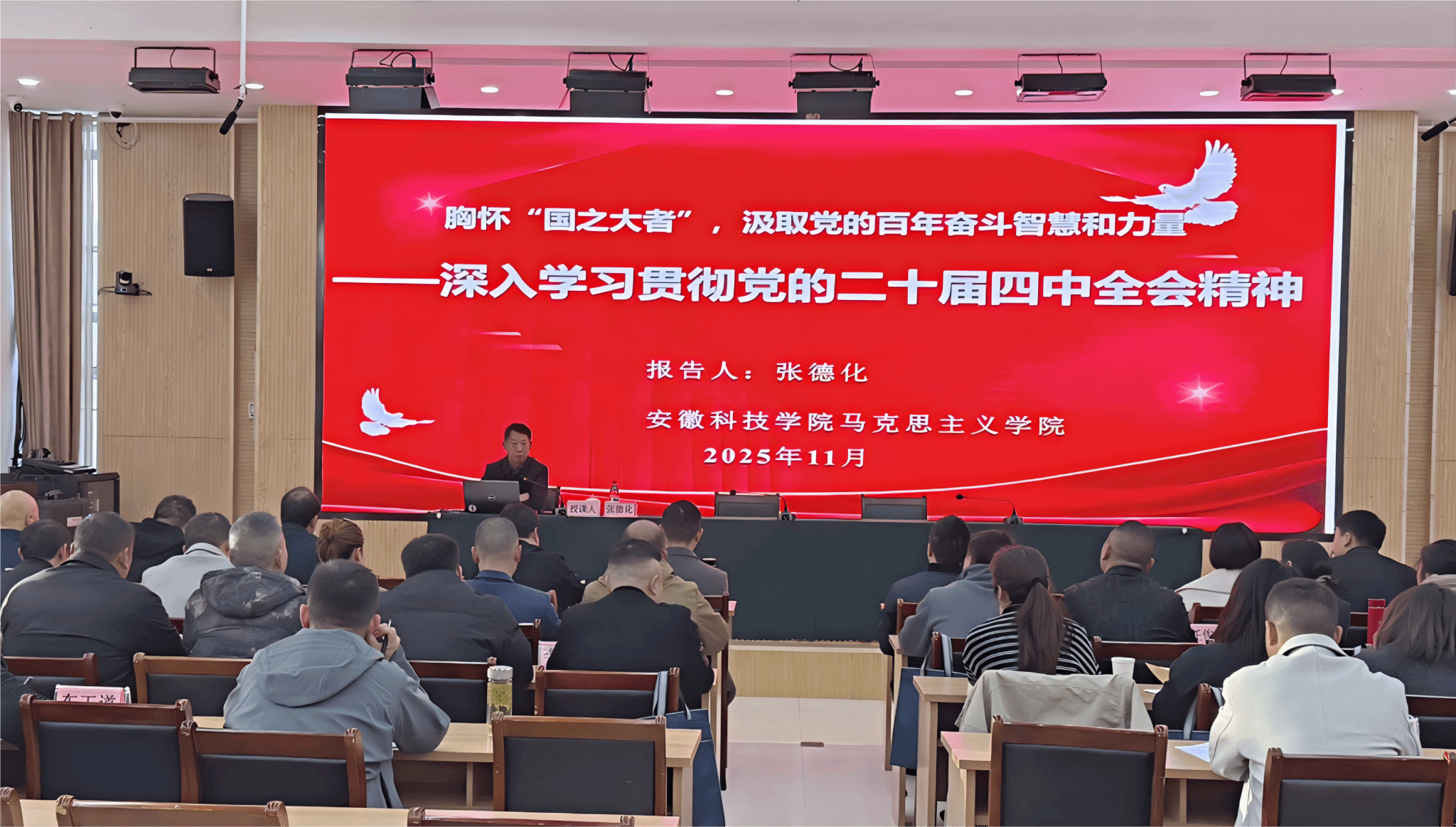 在专题教学环节上,星空线上平台(集团)官方网站马克思学院院长张德化教授围绕《胸怀“国之大者”,汲取党的百年奋斗智慧和力量》这一主题,对党的二十届四中全会精神进行了系统解读,引导学员们进一步提高政治站位,强化乡村振兴责任担当,为芜湖市白茆镇经济社会发展做出新的贡献。安徽财经大学新徽商研究中心主任、蚌埠市品牌学会会长王唤明教授以《智慧农业全产业链的解构与重构及现代招商引资模式》为题,深入剖析了现代农业发展的新趋势、新模式,为白茆镇农业产业化升级与精准招商提供了新思路。安徽财经大学中国乡村(小岗)振兴研究院研究员和院长、安徽省委讲师团理论宣讲专家库宣讲专家赵守飞教授则带来了《乡村振兴的路径创新与集体经济实践》的精彩课程,结合大量鲜活案例,分享了发展壮大村级集体经济的有效路径与创新方法。