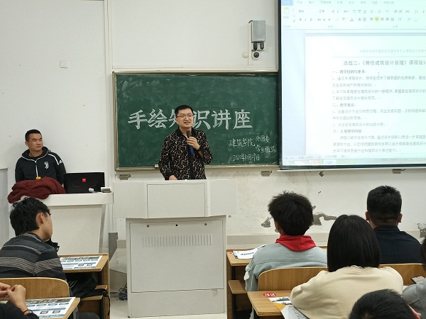 为提高建筑学子手绘技能,10月29日晚,建筑学院于龙湖校区致知楼A108教室举办手绘知识讲座,钱敏和暴雪两位讲师担任主讲。建筑学院2020级风景园林、城乡规划、建筑学专业学生聆听了讲座。
