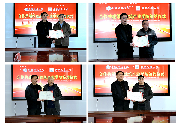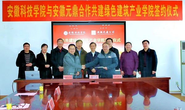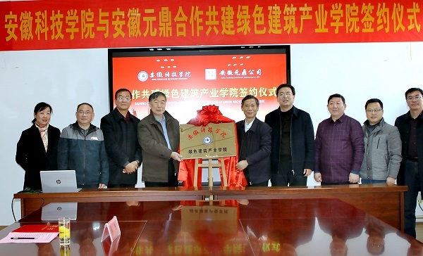 12月20日下午,我校“绿色建筑产业学院”签约暨揭牌仪式,在安徽元鼎建设工程有限责任公司三楼会议室举行。校党委副书记、校长李震,校党委委员、副校长黄友锐,教务处处长俞浩,建筑学院院长张远兵、党委书记傅友福;安徽元鼎建设工程有限责任公司董事长叶士平、党委书记吕义龙、副总经理张志坚、总工程师张继文等共同参加了签约暨揭牌仪式。仪式由张远兵主持。