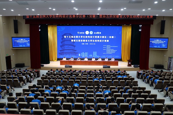 6月25日上午,第十五届全国大学生结构设计竞赛分区赛(安徽)暨第五届安徽省大学生结构设计竞赛开幕式在我校龙湖校区图书馆东辅楼报告厅开幕。校党委委员、副院长黄远友,安徽省大学生结构设计竞赛秘书长、合肥工业大学土木与水利工程学院院长王静峰,蚌埠市住房和城乡建设局党组书记、局长孙如斌,黄山学院建筑工程学院院长周甄川,蚌埠市建筑设计研究院集团有限公司执行董事、总经理凌建祥,我校教务处处长赵伟峰、建筑学院党委书记傅友福,及省内相关高校土木工程专业师生350余人参加开幕式。仪式由建筑学院院长张远兵主持。