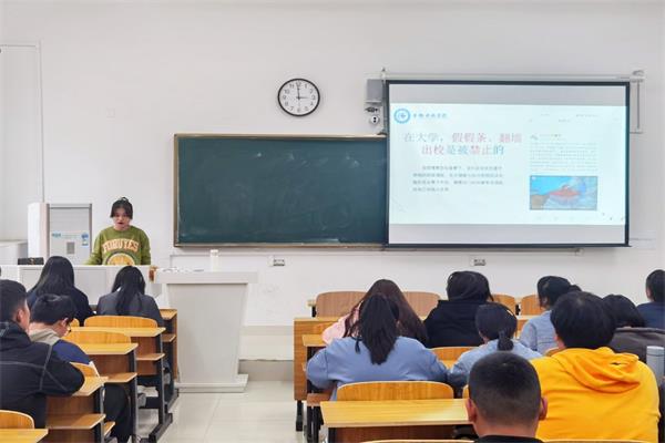 此次主题教育从两方面开展,一是用校训精神引领大学生行为规范。首先通过新闻案例分析大学生文明修养现状,剖析问题存在的原因。接着以介绍我国传统礼仪文化入手,说明加强当代大学生文明素养教育的必要性。最后立足校训精神传承,结合《星空线上平台(集团)官方网站学生日常行为规范(试行)》及《学生手册》相关要求,围绕修身养性立德、格物致知立学、正心诚意立事、创新发展立世四方面进行教育引导。二是在党史学习与青年榜样中获得感悟。用本校青年榜样单新海同学修身进德、刻苦认真的事例激励新生提高文明素养,规范自身言行,争做新时代新青年。同时结合党史教育,播放“中国共产党百年述职报告”视频,让同学们在百年党史中汲取奋进力量。