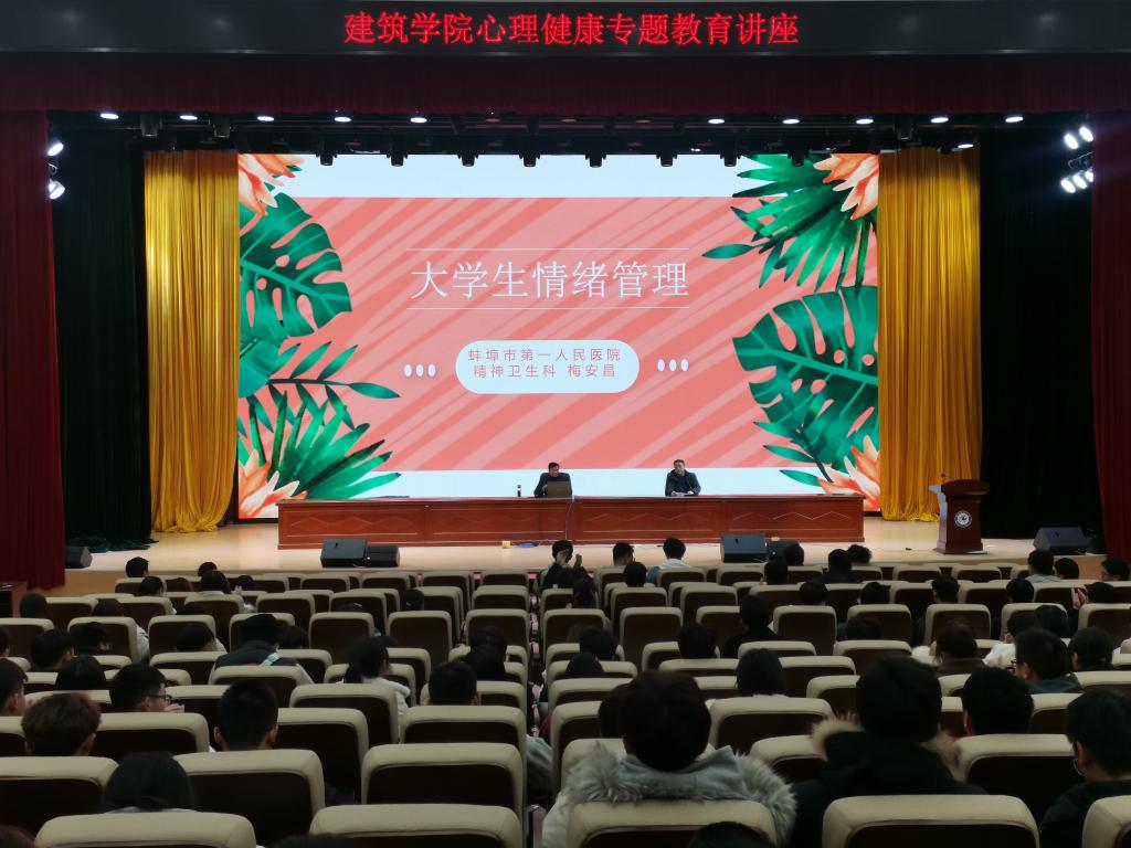 仪式结束后,双方共同参观了建筑学院学生作品陈列室、建筑模型展示室等;蚌一院精神卫生科主任梅安昌还为同学们作了一场精彩的大学生情绪管理辅导报告。(特约通讯员:吴婷婷 审核:谢宜勤)