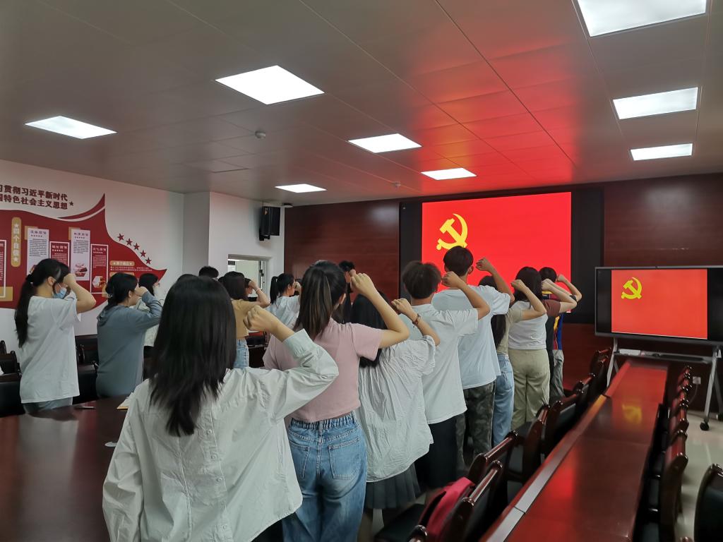 党课结束后,支部组织全体党员面对党旗重温了入党誓词,并为毕业生党员赠送了支部的文创作品作为毕业纪念。(特约通讯员:靳盼 摄影:张佳媛 审核:傅友福)