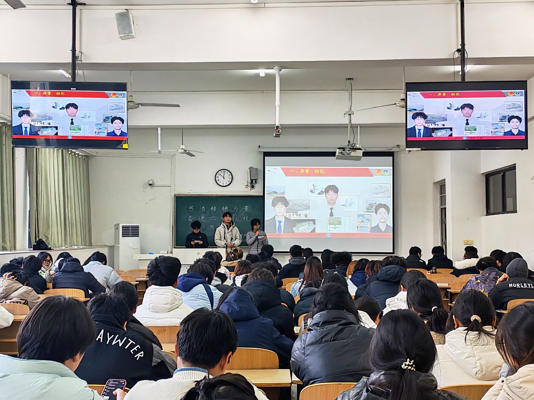 随后,三位优秀学生代表结合自身经历分享了他们在第二课堂中的收获与成长。黄赵云从自己备赛全国大学生先进成图技术大赛的经历谈起,讲述了如何通过一次次练习和实践,把课堂知识转化为实际能力,最终获得国家级奖项的过程,他坦言:“动手做、多实践,才能真正理解专业知识。”林浩分享了参与校易班运营和心理微课制作的经历,谈到在服务同学的同时也锻炼了自己的沟通与组织能力,实现了个人成长与价值回馈的双重提升。缪睿昊则结合担任班级干部和参与校园媒体工作的实际,总结出“责任、协作、创新”是他在实践中最重要的三点体会。他们的发言来自真实经历,让在场同学听得专注、感到亲切。