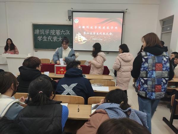 12月20日晚,建筑学院在致知楼C107教室召开建筑学院第六次学生代表大会。建筑学院辅导员沈德艳、阮怀思、蒋臣及学代表出席会议。会议由阮怀思主持。