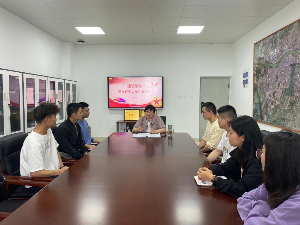 为进一步做好退役在校大学生教育和管理,4月19日下午,建筑学院在尚行楼A302召开退役在校大学生座谈会。学院党委副书记谢宜勤、辅导员王明哲及全体退役在校大学生参与了会议。座谈会由谢宜勤主持召开。