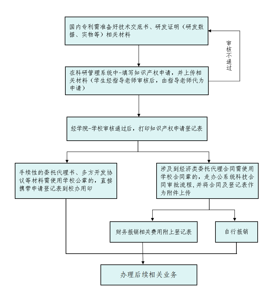 1、知识产权申请登记不再通过线下进行,审批通过后携登记表和有关材料到凤阳校区新图书馆10楼1008办公室进行用印。(涉及到科技合同审批的请按照科技合同流程进行)