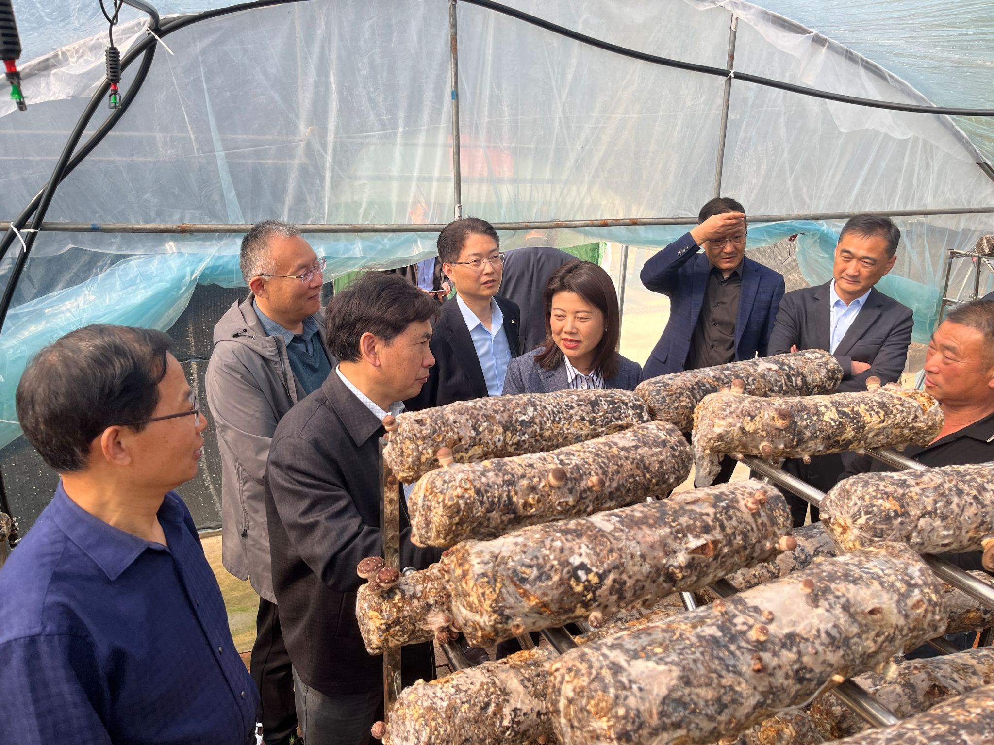 会前,何华奇教授陪同中华全国供销合作总社科教社团部一级巡视员、中国食用菌协会会长高茂林、上海农科院食用菌所党委书记鲍大鹏等一行考察了南谯区食用菌基地。2022年我校成功获批省级科技特派团——南谯区食用菌科技特派团,何华奇任团长。两年多来,团队成员围绕南谯区食用菌发展需求,群策群力,提出了一系列适合利用南谯区麻栎资源的产业发展思路,推动了当地食用菌产业的发展。(特约通讯员:汪道兵 摄影:何华奇 审核:何世潮)